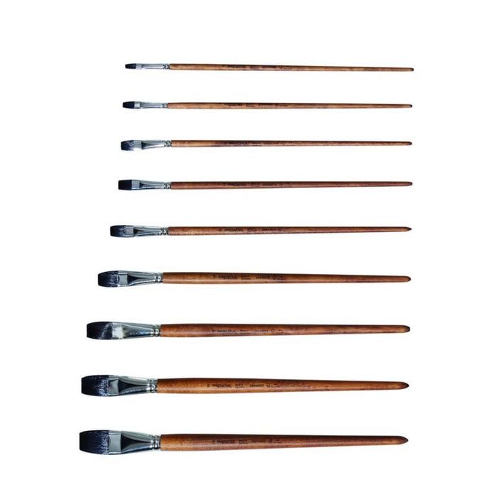 The synthetic polecat brush is a little softer and slightly longer than the cow's brush. This brush is also widely used in painting therapy because of its excellent properties. They are made of FSC-certified wood and the synthetic hair contributes to the sparing of animal hair.