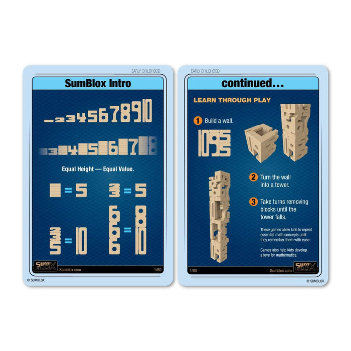 Each SumBlox Mini Set also includes 80 Early Childhood Activity Cards: